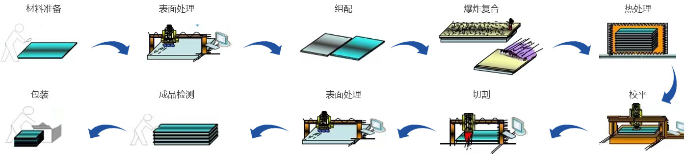 研制開發(fā)出鈦/鋼、不銹鋼/鋼、鋁/鋼等五十多種不同規(guī)格的金屬復合材料,形成了稀有、有色、黑色金屬復合材料產品系列